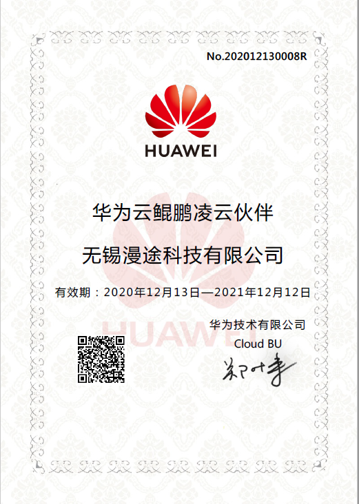 漫途科技取得華為云鯤鵬凌云伙伴證書