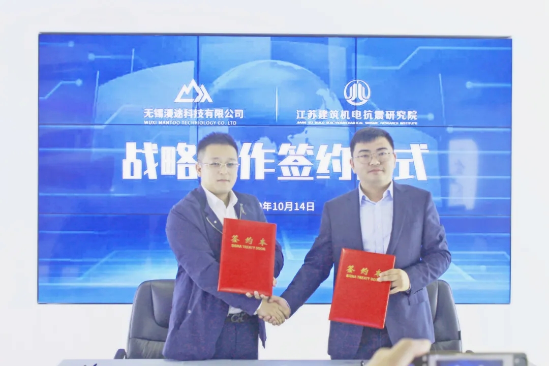 2020年10月,無錫漫途科技有限公司與江蘇建筑機(jī)電抗震研究院簽訂戰(zhàn)略合作協(xié)議。雙方將充分發(fā)揮各自專業(yè)領(lǐng)域的資源和優(yōu)勢,共同推動物聯(lián)網(wǎng)在智慧城市基礎(chǔ)設(shè)施建設(shè)領(lǐng)域的深入應(yīng)用。