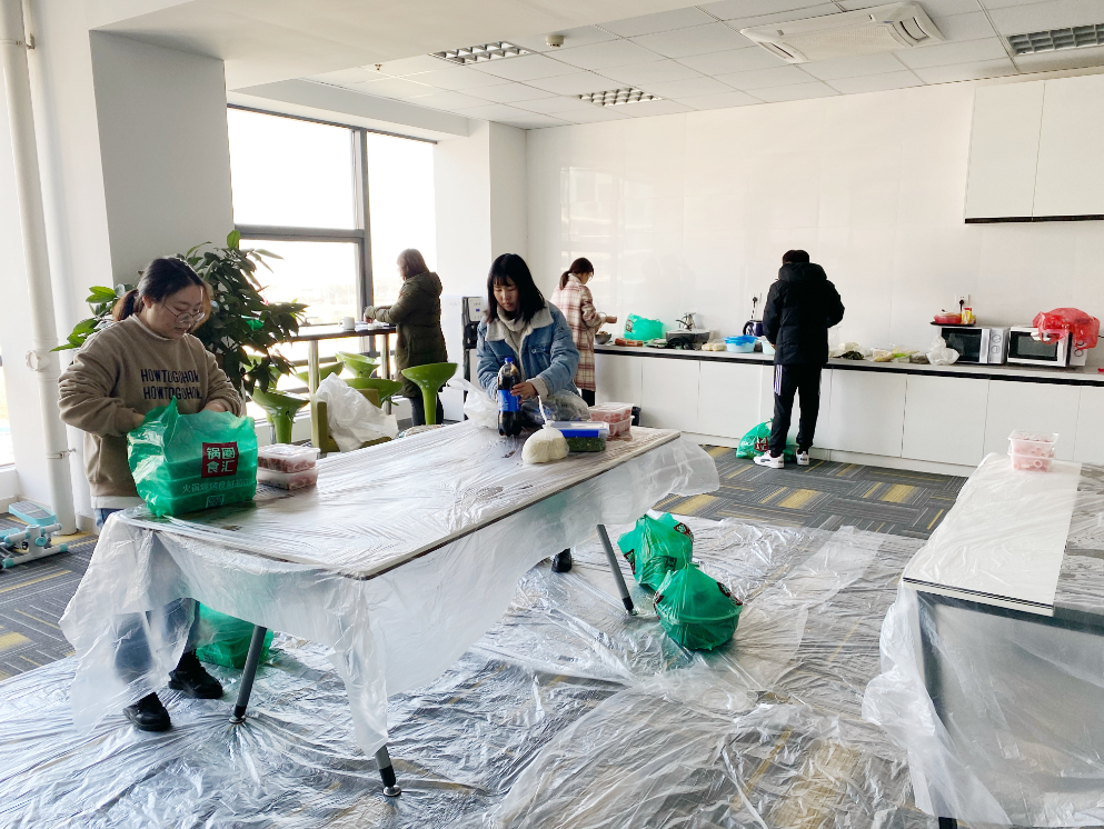 時間到了2月4日下午2點,公司的休閑區提前準備了餡料,