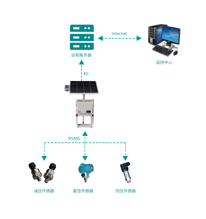 MTWE46-12-8防爆監控箱,內置數采核心無線網關、太陽能控制器模塊、電源模塊,采用太陽能供電,支架支持RS485接口和4~20mA模擬量接口數據采集,支持繼電器控制功能,防爆箱采用標準G1/2接口,滿足現場防爆要求,具備防水特征,支持4G、LAN通訊方式,實現數據實時采集與上傳網絡服務器,實現平臺端的遠程監測和控制。