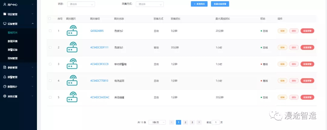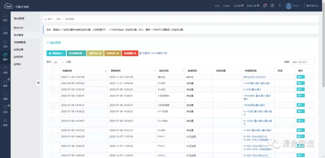 設備管理:支持傳感器監測設備添加、刪除、修改,并綁定對應大壩區域,方便管理監測點位;