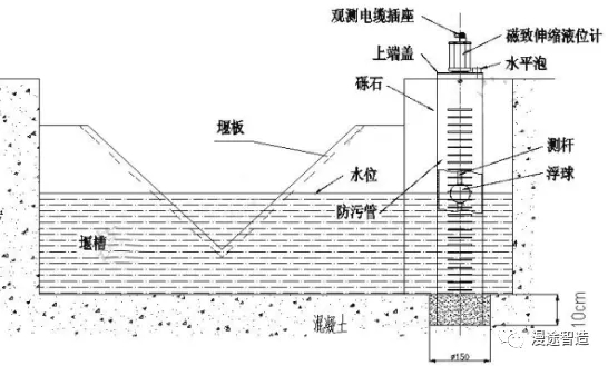 在上游入水口處布設1個水位計。選擇三個監測斷面,每個斷面間隔150m。每個斷面設置2個揚壓力孔,每個孔里面放置1個硅壓式揚壓力計,并在每個斷面設置1個數據采集單元。同時在下游壩趾建三角形量水堰。滲流量觀測采用量水堰計觀測,量水堰計布置在排水道側壁上。埋設安裝需配置堰板,儀器置于堰板上游1米以外,安裝位置堰槽側壁開凹槽,儀器固定后凹槽內放置礫石濾水。