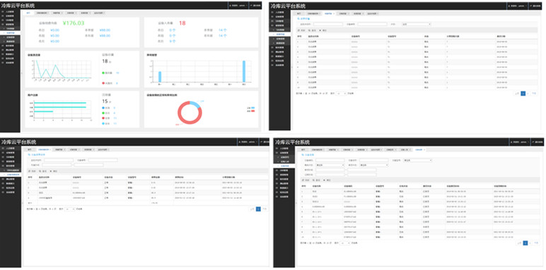 v可視化數據展示:設備實時在線率統計、設備溫度實時顯示、故障報警數據實時刷新,設備報警數據折線圖表分析展示;