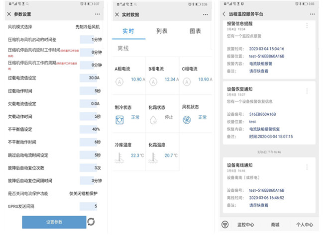 v實時數據:實時顯示設備在線情況、冷庫溫度值、壓縮機等開關狀態;