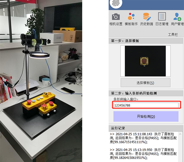 傳統檢修盒面板按鈕安裝正確與否的質檢方法是依靠人工的肉眼逐個檢測是否是正確,效率低、誤識別率高、耗時耗力。對于一些重要的按鈕,尤其是停機、上下鍵安裝出錯易導致嚴重的事故,因此急需采用人工智能檢測手段,引入機器視覺檢測,配合AI智能算法,有效控制產品質量,從而杜絕或減少缺陷品的產生。
