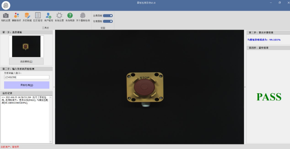 制作模板:支持自定義新建模板,通過相機抓取合格的圖片進行特征值自動識別,并保存對應模板特征值;