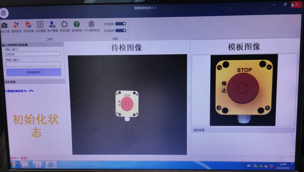 檢驗窗口:支持查看待檢設備及模板圖像、檢驗結果等,設置系統初始化配置;