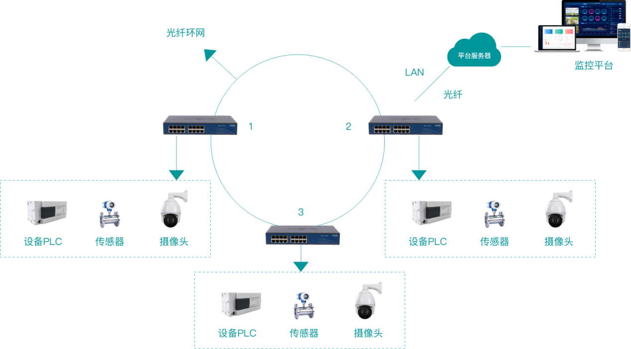 本項目主要由網關、傳感器、平臺軟件三部分組成。通過對常見的工業場景下溫濕度、噪聲、激光測距、稱重、水電表、CO2含量、PLC運行狀態等進行實時采集,并將采集數據通過WIFI、網口、LORA、4G、5G等多種無線組網方式傳輸至服務器進行數據存儲、分析、顯示,并通過三環組網方式進行設備組網管理。以工業互聯網場景為背景,深入講解工業互聯網常見的技術、工作原理等,理論與場景結合,進一步提高學院教學和科研質量。