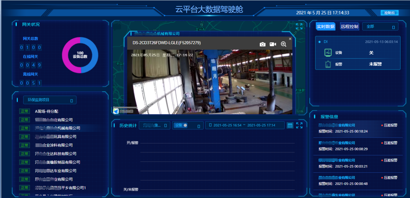 6)視頻監(jiān)控:可實(shí)時(shí)對(duì)企業(yè)生產(chǎn)活動(dòng)進(jìn)行監(jiān)控,視頻數(shù)據(jù)實(shí)時(shí)存儲(chǔ)在本地,本地可支持視頻數(shù)據(jù)存儲(chǔ),存儲(chǔ)可以通過平臺(tái)和APP查看歷史數(shù)據(jù)。