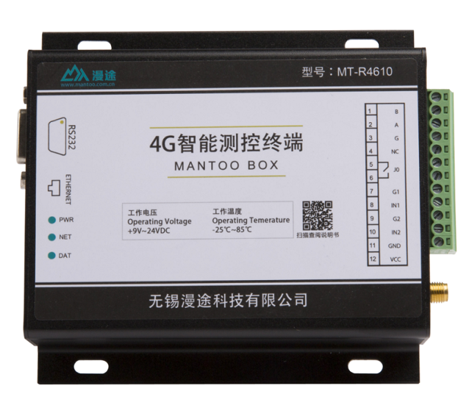 MT-R4610 is a high-performance measurement and control device that integrates RS232 / RS485 interface, digital input, relay output, LAN port and wireless data communication. It supports RS485 device access and is an intelligent terminal device that implements wireless measurement and control. The data storage, period and reporting period can be adjusted according to the requirements of the user environment. In the system, it is mainly used for data acquisition and upload and input and output control buttons, alarm lights, LED display screens, sound and light alarms.