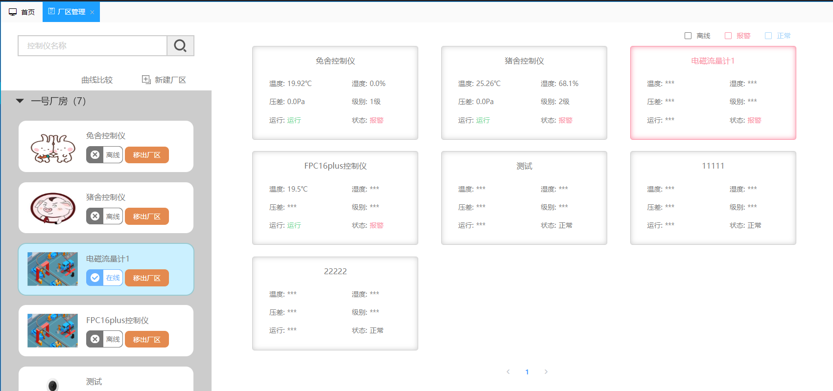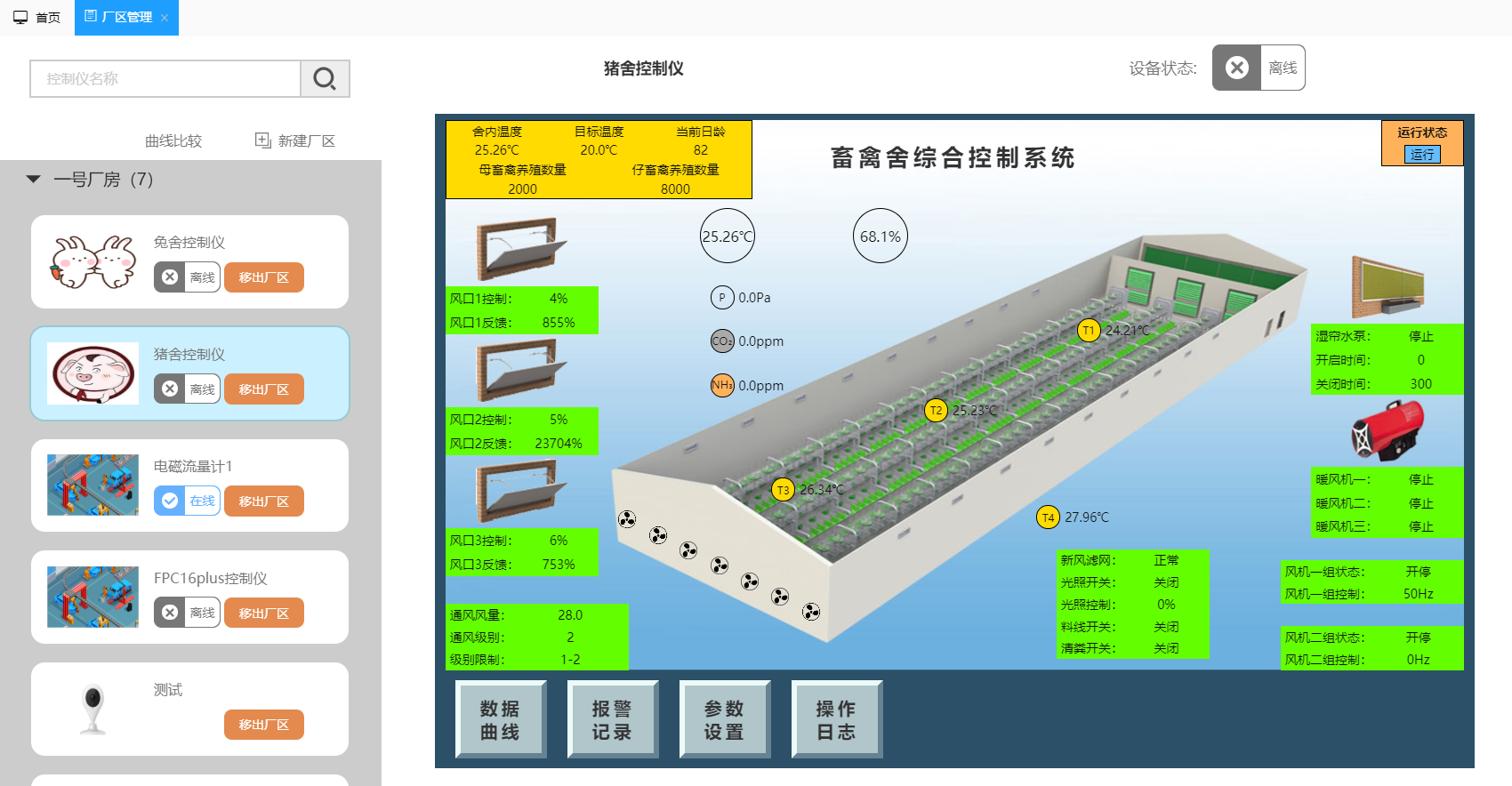 All the equipment can be checked and operated in groups according to the plant area. The equipment and the plant area can be freely bound and unbound, and the equipment in the same plant area can be compared in data curve.