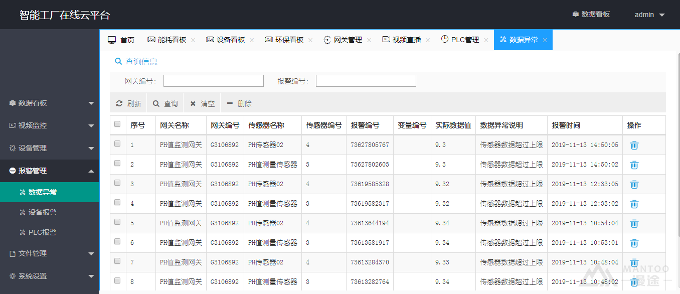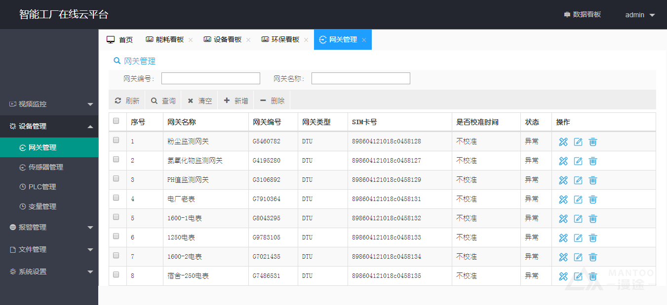 MANTOO, as an industrial IoT service provider with R & D and intelligent manufacturing capabilities in the Yangtze River Delta region, uses the cloud platform, wireless transparent transmission, and edge computing technology in conjunction with intelligent acquisition terminals MT-D310 and MTB- R4642, with sensors and equipment acquisition and transmission as the core, has developed a smart factory online cloud platform system that integrates equipment online, environment online, energy consumption online, and ERP system integration. This product helps the factory to solve the real-time collection, analysis, and early warning of equipment data, environmental data, and energy consumption data, and centralized management of various large equipment. Effectively improve the overall operating efficiency of the enterprise and reduce its operating costs.