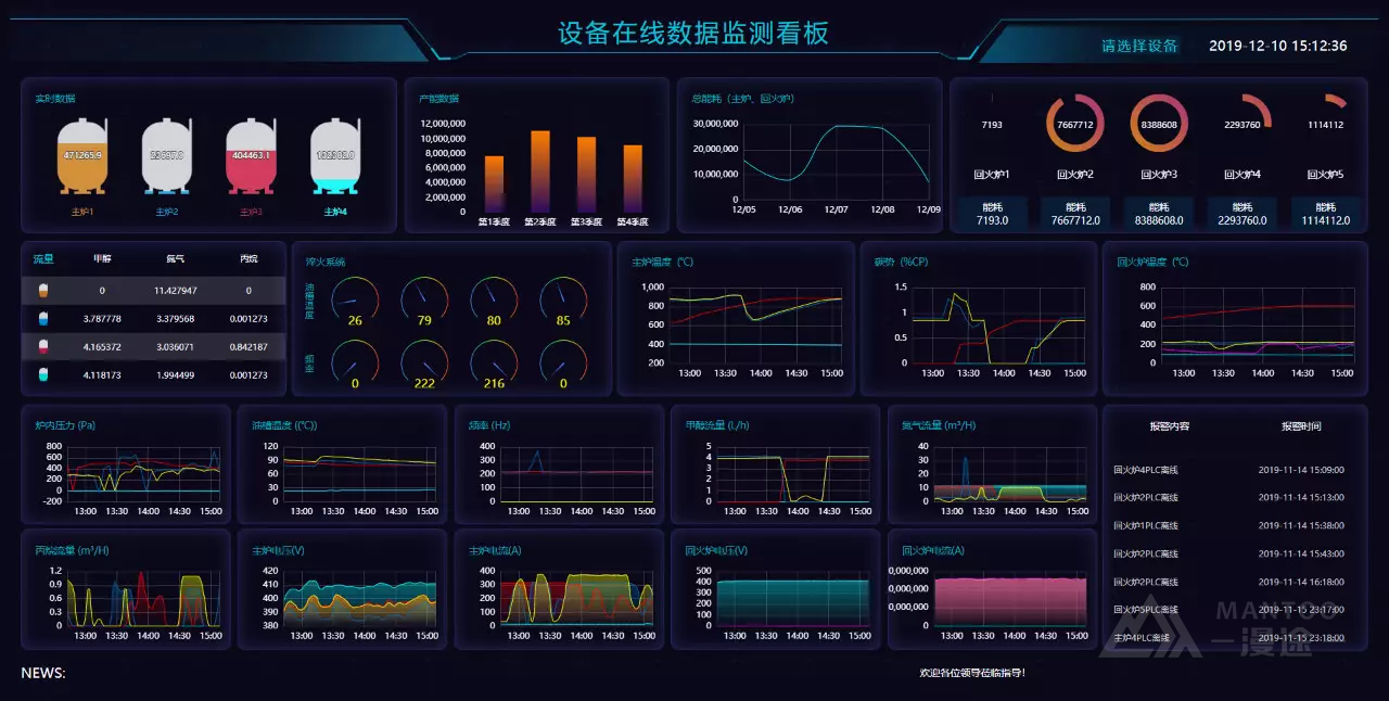 ※ Energy consumption monitoring: Real-time collection of energy meter, transformer and other energy-consuming equipment data, including power consumption, ABC three-phase current, voltage, active power, power factor, etc., from the factory, workshop, production line, day, month, and year dimensions Energy consumption statistics and analysis to achieve energy consumption monitoring.