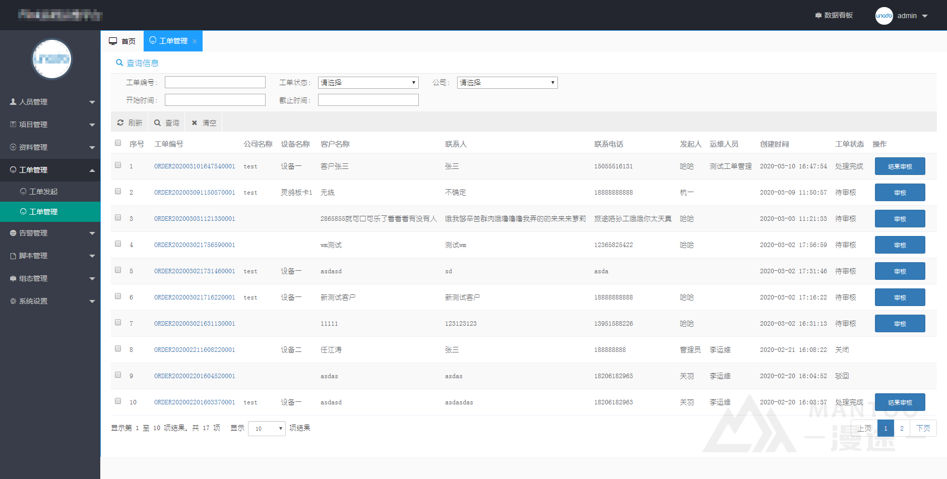 -Operation and maintenance management: Online feedback on issues, generation of work orders, review and dispatch by administrators, operation and maintenance personnel receive tasks through Nail, WeChat and other platforms, online processing, combined with Nail Daily report for task execution feedback, comprehensive management and control of O & M Improve operation and maintenance efficiency.