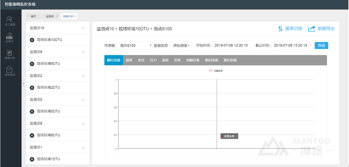 MANTOO, as an industrial Internet of Things service provider integrating R & D and intelligent manufacturing capabilities in the Yangtze River Delta region, uses industrial Internet of Things technology and MTBE4-6-4A remote measurement and control system control cabinet according to the needs of heating companies to develop A remote heating online monitoring cloud platform system integrating data collection and automatic control functions has been developed. This product helps the factory solve the problems of serious heat loss and low management efficiency, so that the factory can implement visual management of flow data in various places and automatic valve control, which greatly improves the company's management level.