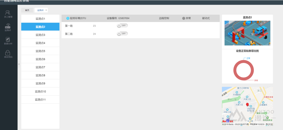 At present, a heating company in Shunde, Guangdong, mainly supplies heat to local production enterprises. Previously, the management of heating valves has been using traditional methods. The valves cannot be monitored online, the flow data cannot be collected remotely, and the valve switches cannot To achieve remote control, people need to go to the site to operate, the efficiency is low, and the labor cost is very high. The company hopes to use an intelligent industrial monitoring system to realize the automation and scientific management of data collection and automatic control, reduce heat loss Improve the quality of heating, achieve the purpose of energy saving and consumption reduction and improve the overall management level.
