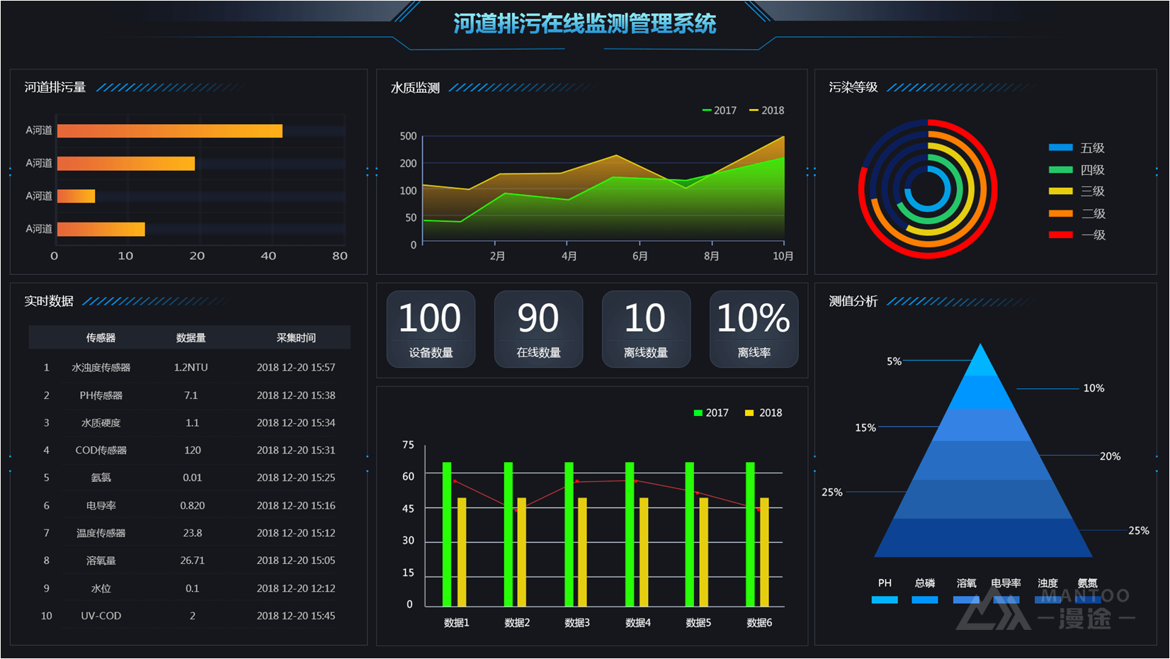The online water quality monitoring system provided by mantu technology plays an important role in environmental protection and water quality monitoring in our region. Water quality monitoring in the river is the most worried about the theft of discharge, the impact of an hour of enterprise drainage on the water quality may be three months of substandard, and the system in each sewage point monitoring water quality, and video linkage, when the water quality exceeded the first time trigger alarm, and video evidence, the phenomenon of theft discharge is basically eliminated. Every week, every month and every year, we can also automatically generate environmental reports to help us reproduce the green mountains and green rivers.