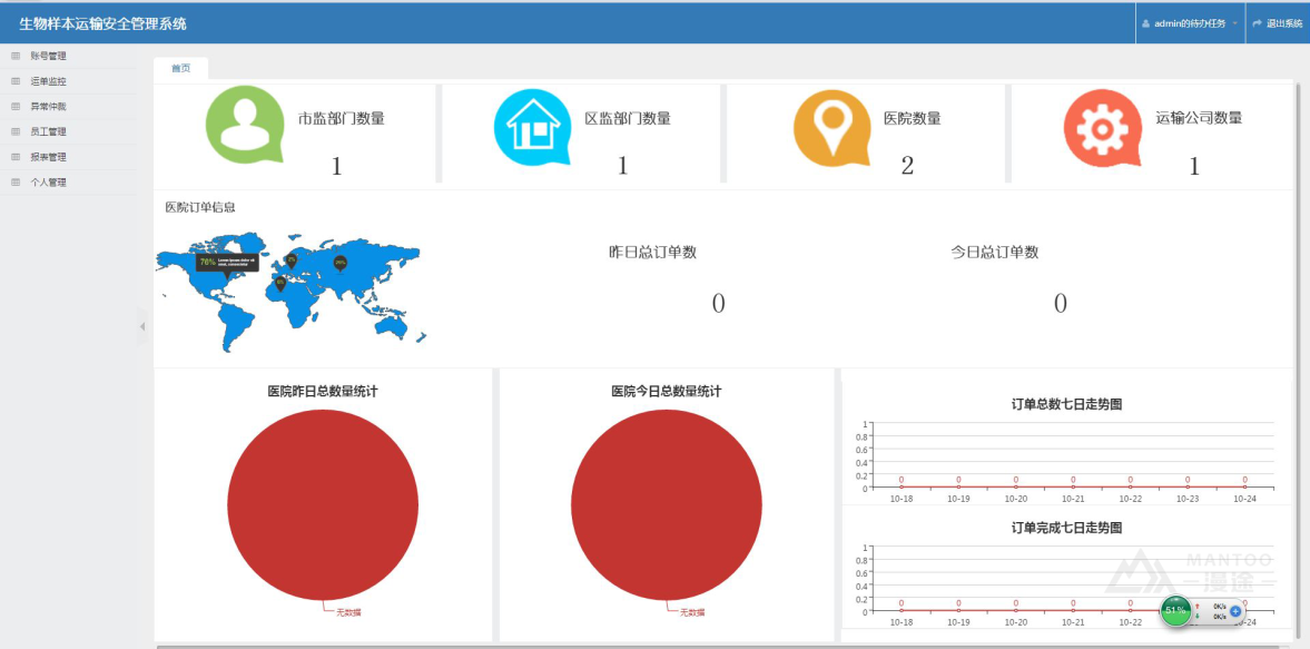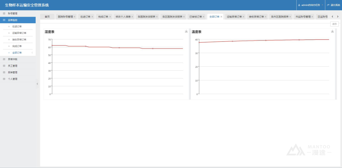 Mantoo technology provides a set of biological sample transportation monitoring system for our enterprise to solve the transportation box environment temperature and humidity data real-time collection, real-time transportation path monitoring, transportation box abnormal alarm, remote control, waybill management. Realize the transformation of traditional medicine transportation management to wisdom, improve the quality and efficiency of management, and greatly increase the output value.