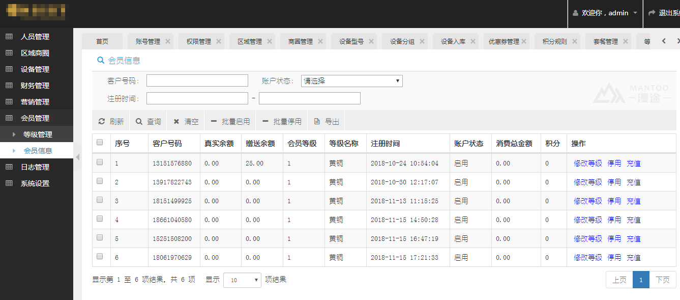 ※ consumption management: different top-up or consumption coupons can be set according to the time limit, times limit, etc., for the issuance of card coupons.