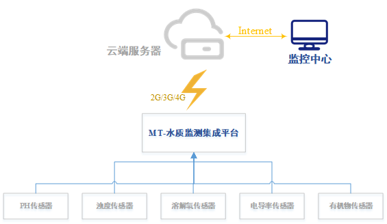 MTW400A水質一體機是具有多傳感器數(shù)據(jù)采集、處理、報警、上傳云數(shù)據(jù)庫及本地實時數(shù)據(jù)顯示的飲水安全測控一體機。通過在蓄水池池水、自來水管道放置PH,濁度,余氯,溫度,溶解氧,電導率等傳感器探頭對相應指標進行檢測并將檢測值發(fā)送給MTW400A設備,由MTW400A設備實現(xiàn)狀態(tài)監(jiān)測、自動報警、顯示、校準、數(shù)據(jù)上報、存儲等功能,由漫途MTIC云平臺實現(xiàn)大數(shù)據(jù)處理、分析等IoT生態(tài)系統(tǒng)。