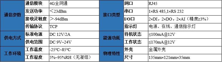 MTB46-4-2A系列無線遠(yuǎn)程測(cè)控終端是集成了模擬信號(hào)采集、開關(guān)量輸入、開關(guān)量輸出、自主決策和無線數(shù)據(jù)通信于一體的高性能測(cè)控裝置,可以直接接入各種傳感器、標(biāo)準(zhǔn)變送器信號(hào)、儀表等輸出的模擬信號(hào)、電平信號(hào)、干觸點(diǎn)、等,采用高性能的工業(yè)級(jí)處理器和工業(yè)級(jí)無線模塊,提供1路RS485接口、2路模擬量(0~10V)輸入、2路開關(guān)量輸入、2路繼電器輸出。可以實(shí)現(xiàn)數(shù)據(jù)采集與遠(yuǎn)程控制,支持本地自主決策及邏輯配置,支持協(xié)議自定義,匹配多應(yīng)用場(chǎng)景。支持4G無線和以太網(wǎng)通信功能。