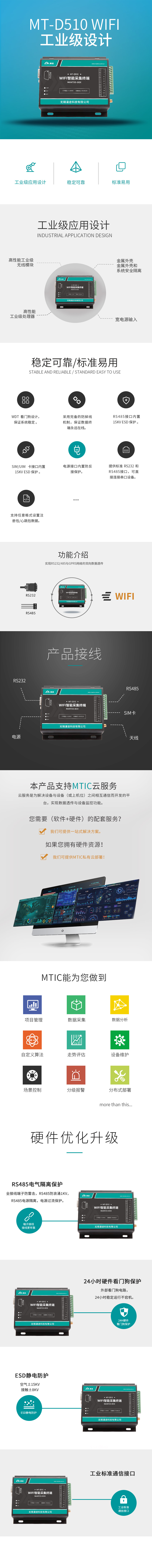 MT-D510 WIFI 無線遠程數傳終端是集成了采集和無線數據通信于一體的高性能無線采集裝置,可以直接接入RS485傳感器。