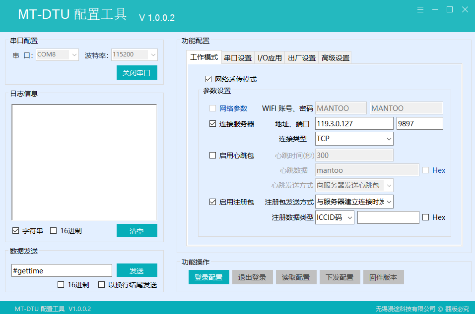 勾選“連接服務器”,填入對應的參數。注冊包默認選擇CCID(SIM卡號)。