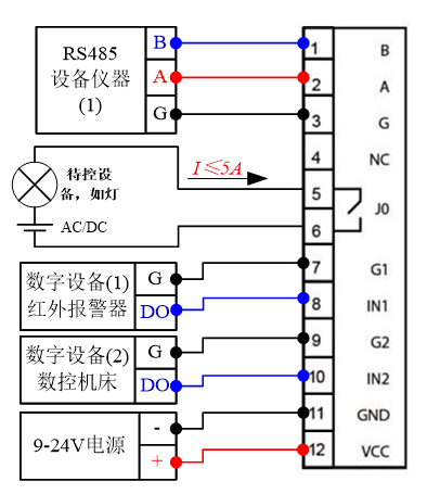 (2)多RS485設備時,采用“手拉手”接線方式;外接傳感器設備(RS485設備儀器)在電源與網關電源適配的前提下可以由網關供電。接線如圖2:
